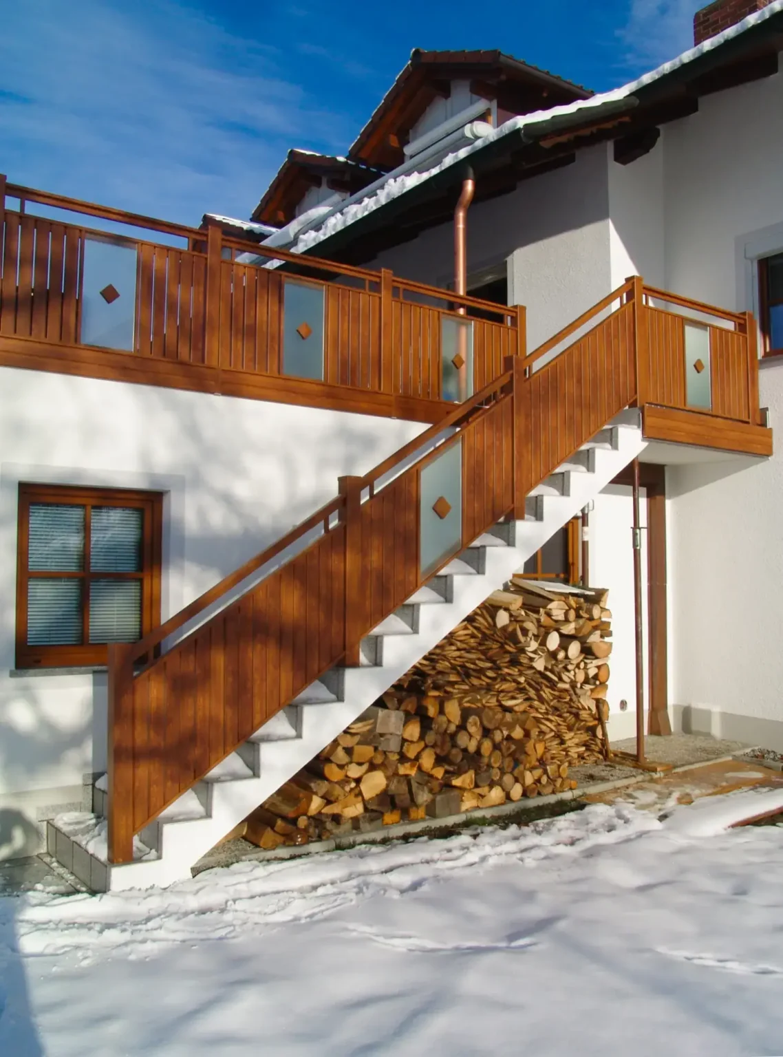- In Gerade für Balkone und Terrassen, in Schräg für Treppen