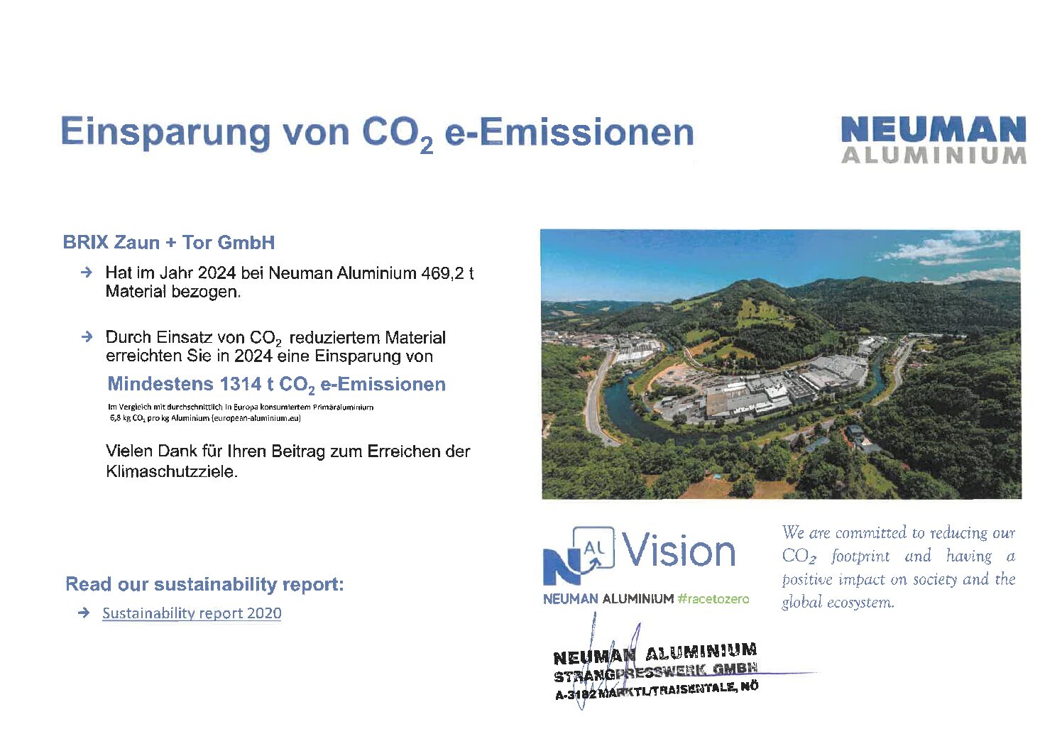 Beim Erwerb einer Zaunanlage aus Aluminium entscheiden Sie also mit, wieviel CO2 gespart wird!